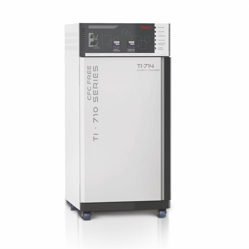 Laboratory stability chamber with a temperature range of 20°C to 60°C and humidity from 40% to 90% Rh. Features motorized blower for uniform conditions.
