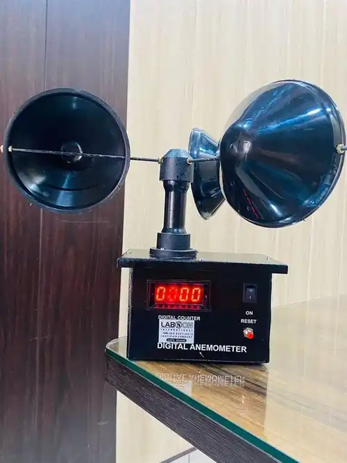 Black digital anemometer designed for laboratory use. Provides accurate wind speed measurements. Ideal for research and testing environments. Minimum order quantity of 10 units.