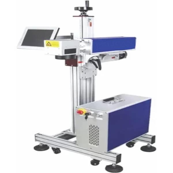 Industrial laser marking machine with 50W fiber laser source. Features 0.008mm min line width and 100,000-hour fiber life. Offers 5% peak-to-peak stability for precise marking.