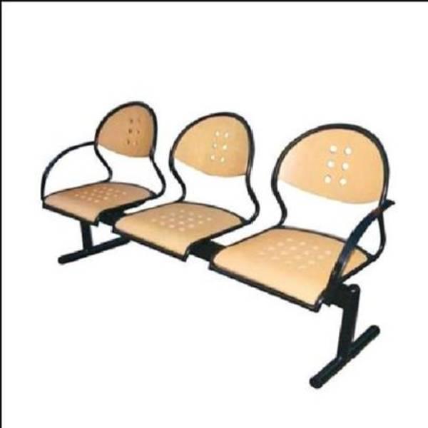 Non-rotatable, non-foldable 3-seater waiting chair with an MS frame and wooden seating. Ideal for offices, colleges, and hospitals. Fixed armrests.