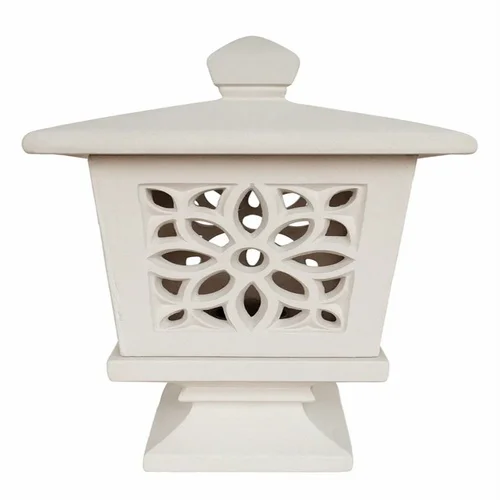 Lantern lamp for home use, featuring red sandstone construction. Equipped with LED lighting. Made in India and currently in stock.