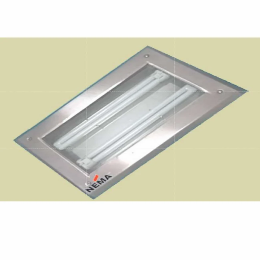 Flameproof LED clean room light for laboratories. Constructed from SS and Aluminium, it operates on 230V AC single phase at 50 Hz. Dark grey finish.