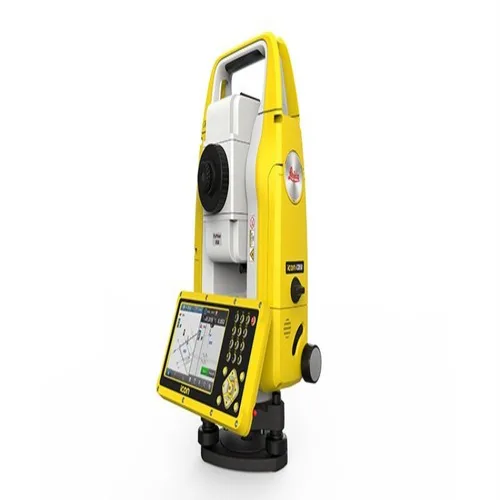 LEICA iCB 50 Survey Station for precise surveying applications. Offers 2 or 5-second angle measurement accuracy. Yellow color for high visibility on site.