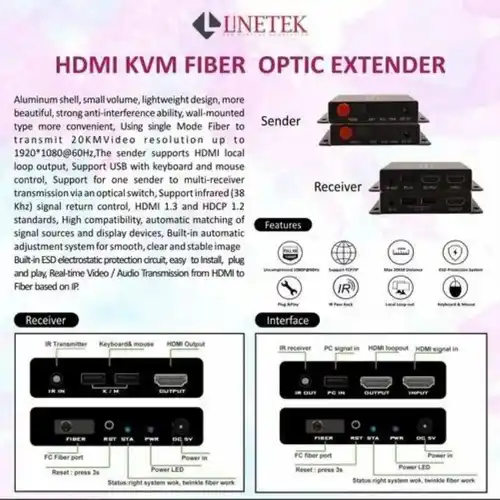 Lintek Fiber Optic KVM Extender (HDMI, USB)