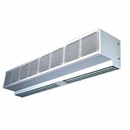 Mall air curtain equipment (9x9x36 Inch) for supermarkets. Offers 8-10 m/sec air velocity, <75 dB noise. 150W power, 230V electrical supply.