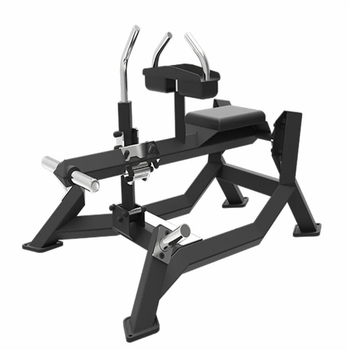 Manual seated calf equipment for gym use. Constructed from mild steel with a 150kg weight capacity and 45cm width. Suitable for commercial fitness.
