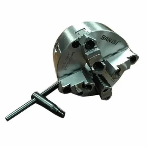 Manual chucks crafted from mild steel. Features a 3-jaw design with a holding capacity of 200mm, suitable for various machining applications.