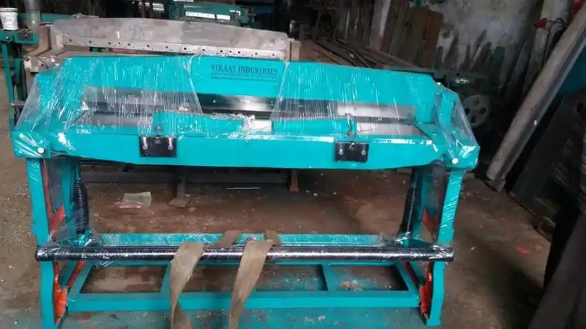 Manual treadle shearing machine with 230V, 50Hz. Cuts iron up to 1mm thickness and 3000mm width. Operates at 12 strokes per minute.