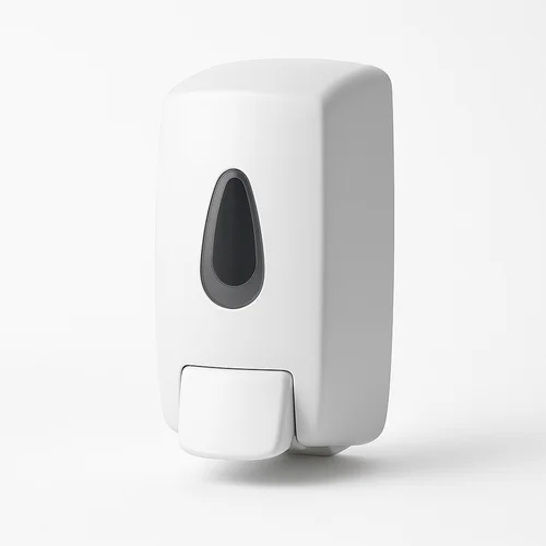 Plastic white manual soap dispenser for public places, residences, hotels, and offices. Durable construction for reliable dispensing in various environments.