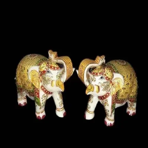 Marble elephant figurine, 1 foot in size, designed for interior decor. Set includes two pieces. Crafted from durable marble.