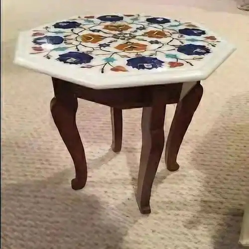 Indoor marble top coffee table, 38 cm size. Features a white marble surface and a new design, weighing 90kg. Suitable for home use.