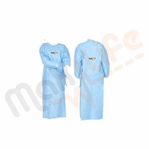 Sterile, disposable L-size blue doctor gown. Standard performance type, ideal for medical settings requiring sterile apparel. Ensures patient and professional safety during procedures.