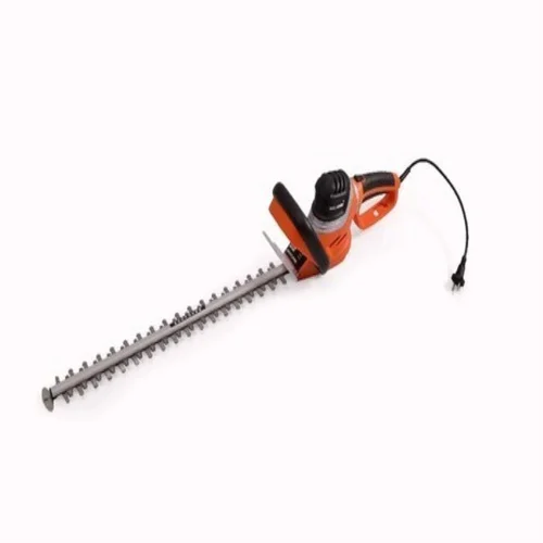 600W continuous rating input hedge machine. Features industrial-grade plastic material and a 24-inch standard blade. Ideal for efficient trimming tasks.