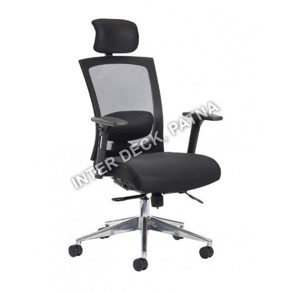 High back mesh office chair with height adjustment and fixed arms. Available in black, offering 18-19 inch seating height. 1-year warranty. Customization available. Made in India.