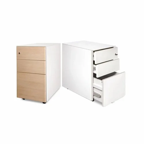 Meta Wooden Powder Coated Free Standing Pedestal with Castors for Office