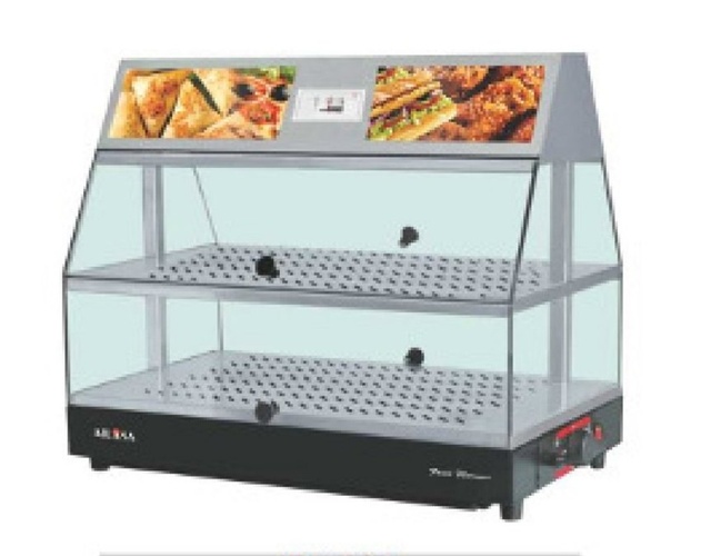Portable metal rectangular display counter with 2 shelves and sliding doors. It is 4.5 feet high and suitable for any application. Minimum order 1 piece.