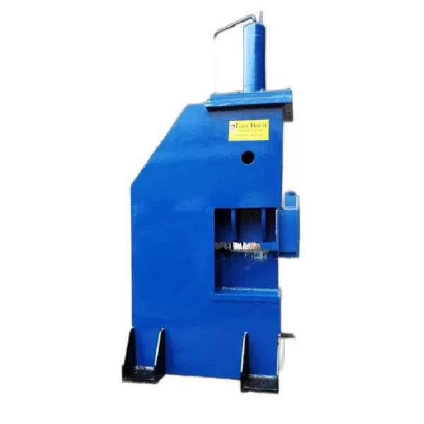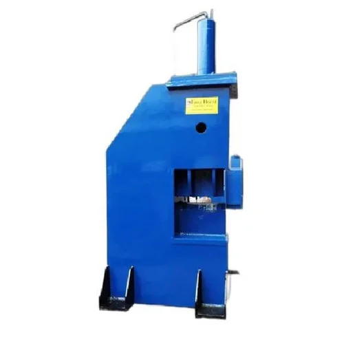 Industrial scrap shearing machine with 50 tons pressing force. Features a High Carbon High Chromium Steel blade and a 7.5 HP electric motor. Control panel operates at 215 Volts for efficient operation.