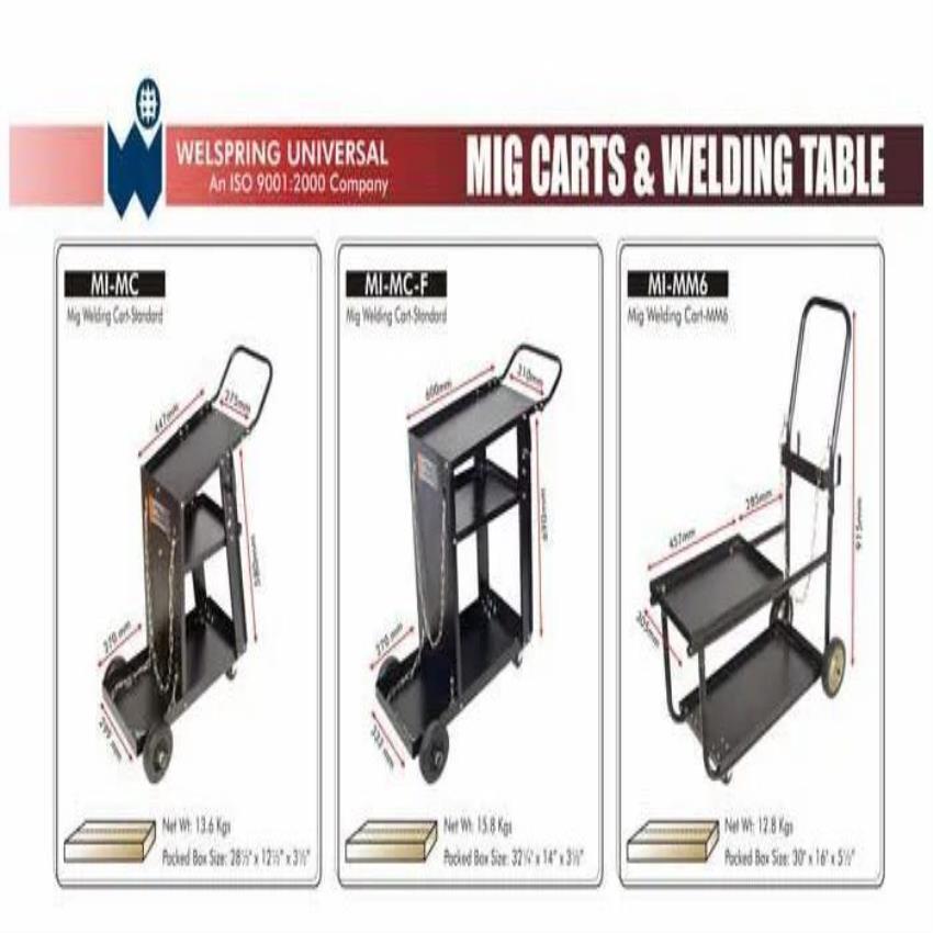 Manual MIG welding cart with 50 kg capacity. Features a magnetic stand for welding holder. Ideal for workshops and construction sites.