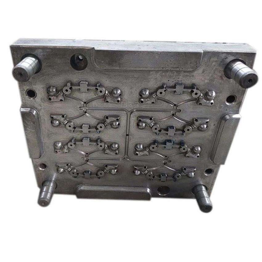 Multi-cavity mild steel mould for automobile parts. Square shaping mode, hot runner system, mechanical clamping. 40HRC hardness, 300 Mpa tensile strength.