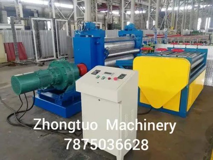 Semi-automatic mild steel chequered embossing machine. Operates at 380v, suitable for embossing thicknesses from 0.2 to 1 mm. New condition, ideal for industrial applications.