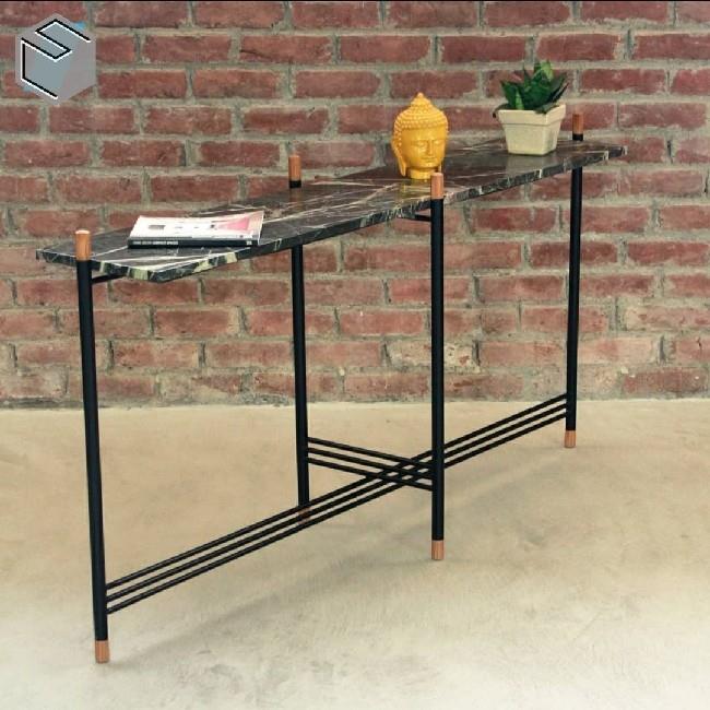 Rectangular mild steel console table with a custom-sized granite top. Ideal for hallways or entryways, this elegant piece offers both style and functionality.