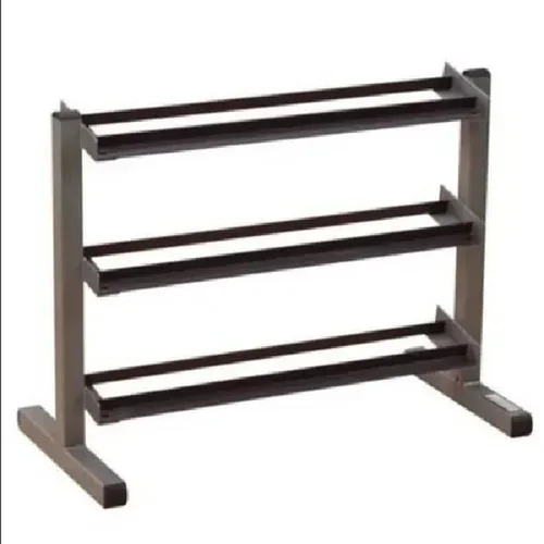 Durable mild steel dumbbell stand with paint and chrome finish. Designed for corrosion resistance, ensuring longevity for home or gym use. Made in India.