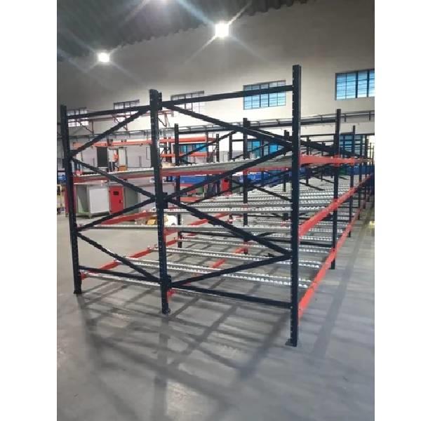 Mild steel FIFO rack system for crate storage. Size 2000 x 1000 x 2500 mm with 2500 mm height. Ensures efficient and organized FIFO storage.