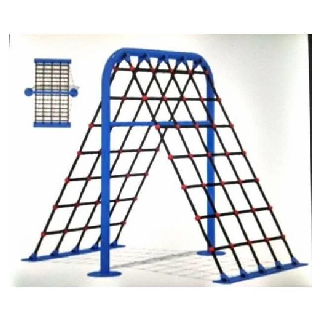 Durable mild steel net climbing machine with double net play area. Dimensions: 10 ft L x 5.22 ft W x 7 ft H. Ideal for playgrounds. Available in blue.