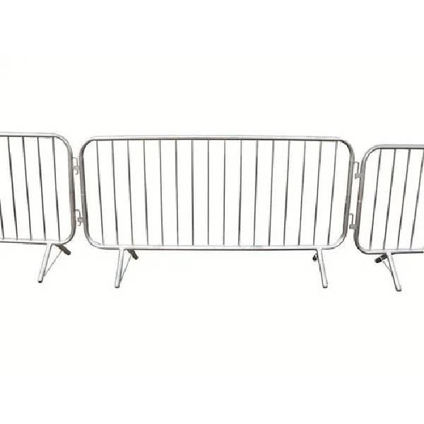 Mild steel pedestrian barrier, 1.1m height, 2.9m length. Designed for road safety applications. Provides crowd control and pedestrian guidance. Durable construction for public spaces.