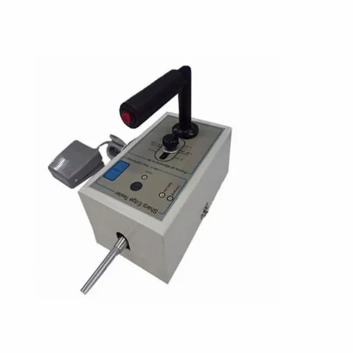 This mild steel sharp edge testing machine features a 7-inch touch screen interface. Operating on 50-60Hz, it tests at precise temperature intervals for safety compliance.