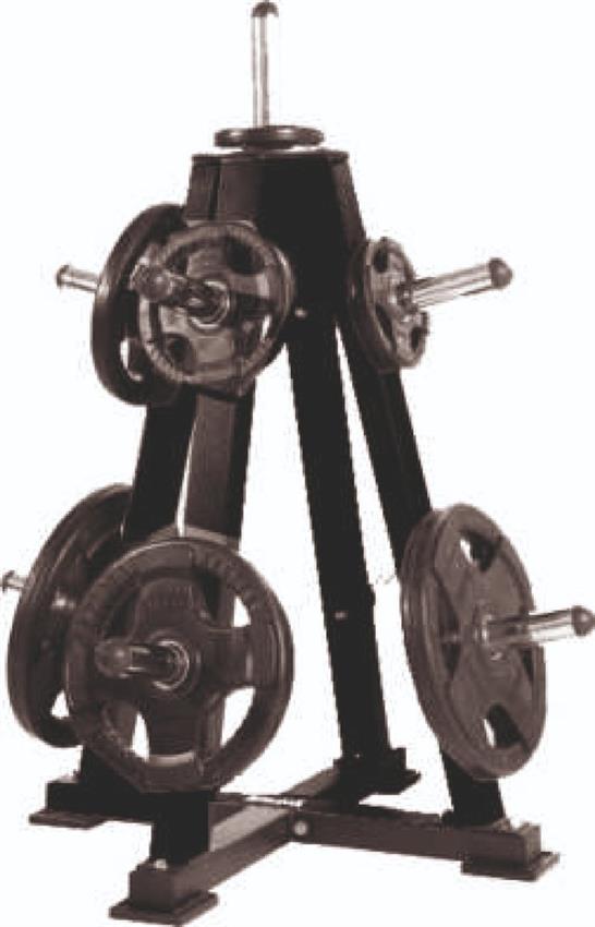 Free-standing mild steel weight plate rack tree for gym. Black color, free size. Durable construction, ideal for organizing Olympic weight plates. Made in India.