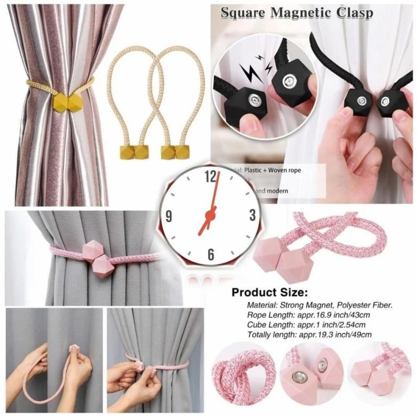 Nylon magnetic curtain tieback rope in mixed colors. Features a fiber core and a pair per pack. Minimum order quantity of 500 pairs.