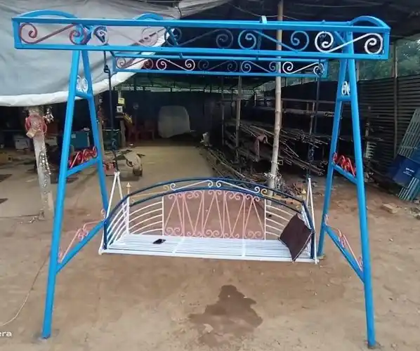 Modern 2-seater garden swing machine made of stainless steel. Supports 100kg load capacity. Ideal for outdoor use. Made in India with MOO 1.