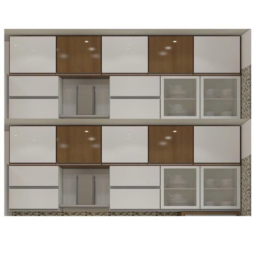 Brown modern modular kitchen cabinet. Features particle board carcass and wooden material with a gloss finish. Designed for contemporary modular kitchen styles.
