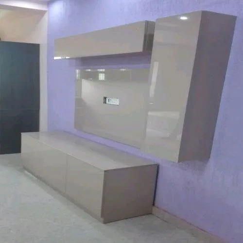 Modern LED unit made of plywood, measuring 6x10 feet. Features 3 drawers and polished surface finish for home application. Ample storage space provided.
