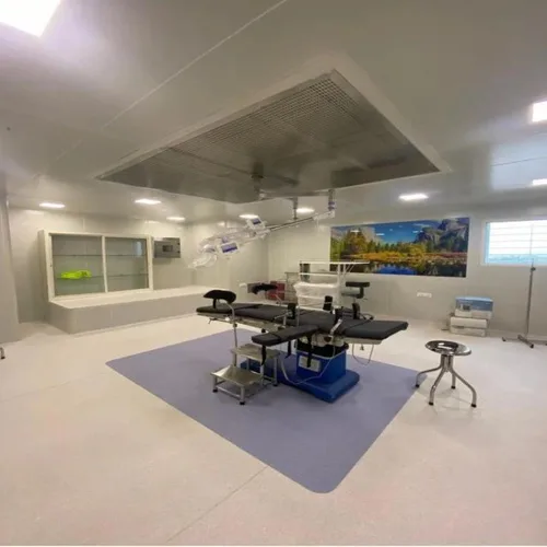 India-made modular operation theatre solution. Features include a production capacity of 10 units. Minimum order quantity is 10. Delivery time is 1 month. Origin: Made in India.