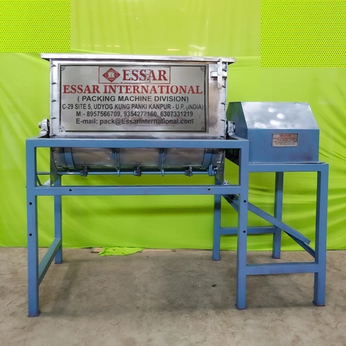 Semi-automatic single shaft paddle mixer machine with 5 hp motor and 2000 kg capacity. Constructed from stainless steel, with a 25-liter mixing chamber volume.