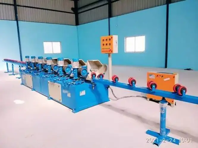 Fully-automatic mild steel pipe polish machine with 51 HP power. Operates on 12V, 50Hz. Produces 3 Ton/Day. Made in India with MS body.