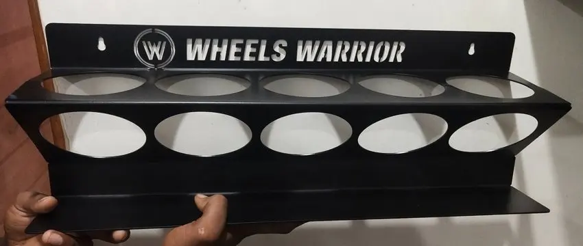MS powder coated holder for spray bottles and compounds. Durable construction for various holding applications. Designed for secure storage and accessibility.