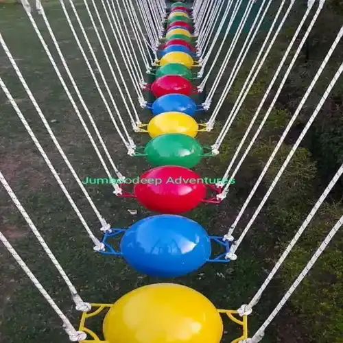 Multicolor MS sphere balance rope course for offline adventure services. Available for online/offline payment modes. Designed for adventure tours across India.