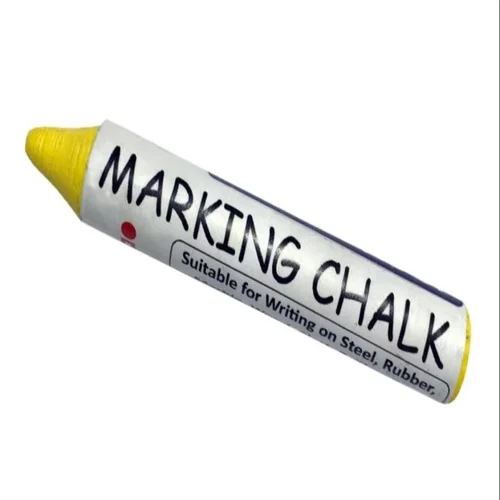 Round marking chalk available in yellow, red, black, blue, green, and white. Marks on glass, metal, plastic, concrete, paper, rubber, and wood. Ergonomic design for easy grip.