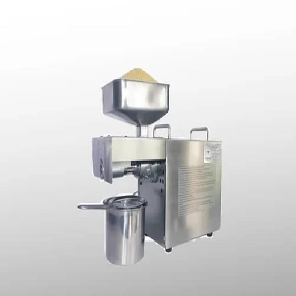 Compact mustard oil expeller, 8 kg/hr capacity. Constructed from food grade stainless steel. Operates on 220V with dimensions 460x240x190 mm.