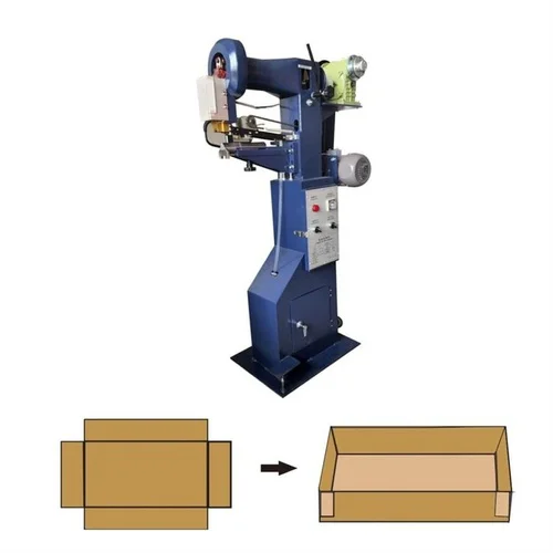 Electric driven, semi-automatic MS box corner pasting machine. Model BPM 30 with a capacity of 10-30 Pcs/m for industrial box corner application.