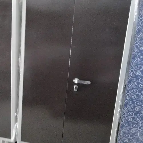 Brown metal storewell painted wardrobe for home. Full size, 6.5 feet height. Durable construction for secure storage. Suitable for various home applications.