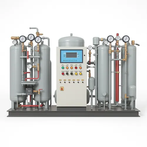 Automatic nitrogen plant with 1100 Nm3/h capacity. Achieves 99.9995% purity. Operates between 5°C - 50°C with a dew point of -40°C to -50°C.