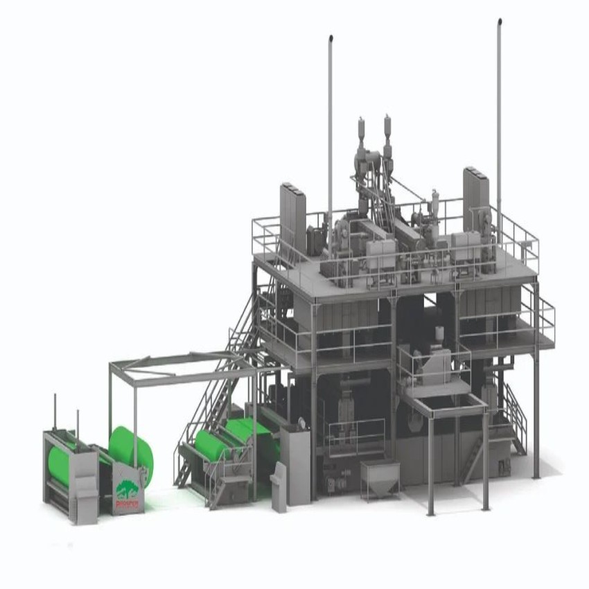 PL SMS non-woven fabric production line with 2250mm roller surface length. Features 300 m/min max mechanical speed and 205-245 deg C spinning beam temperature.