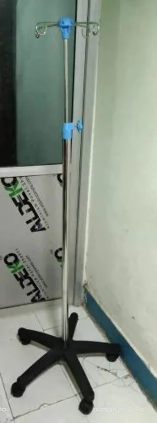 NSW stainless steel IV saline stand (Model NS 302) for hospital use. Features adjustable height of 5.75 feet. Minimum order quantity 10.