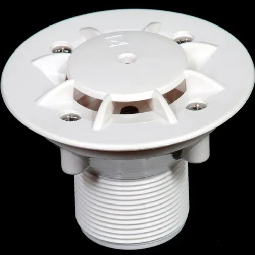 Plastic round white swimming pool floor inlet with 10 m3/hr flow rate. Designed for swimming pool applications. Made in India.