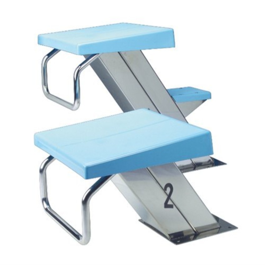 White and blue stainless steel swimming block with corrosion resistance. 500 mm height, matte finish. Manufactured in India for durable aquatic use.