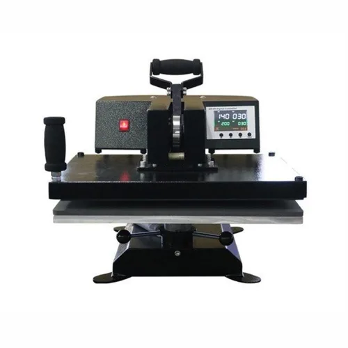 Okoboji Manual Sublimation Heat Press, HP Swing SA20 model. Features digital timer/thermostat, available in 1.5KW/1.8KW power and 120V/220V voltage for T-shirt printing.